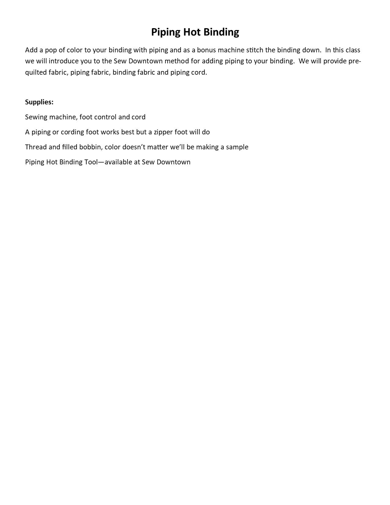 Piping Hot Binding - 2/24, 10:00am-1:00pm
