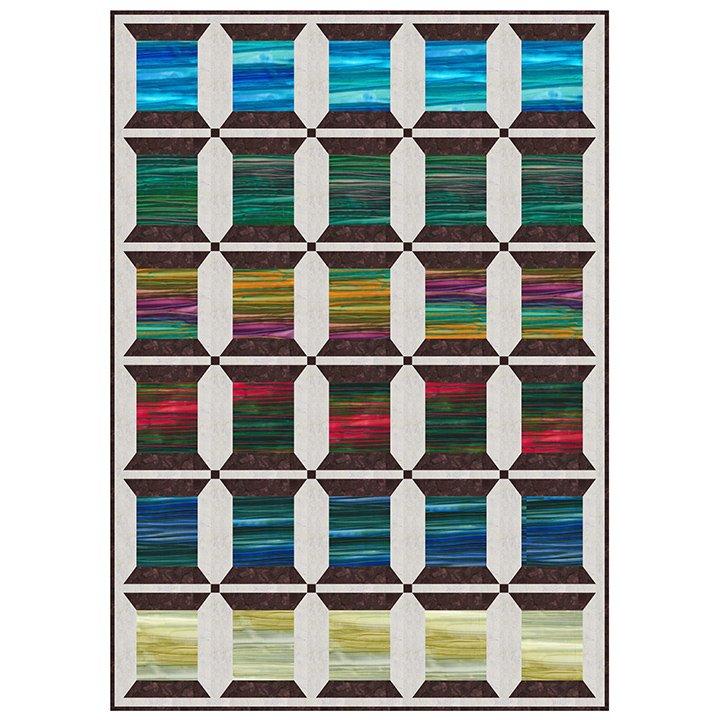 This beginner-friendly pattern will make a 57" x 80" quilt. Kit features Banyan Batiks' Calcite collection. Kit includes pattern and fabric for top and binding