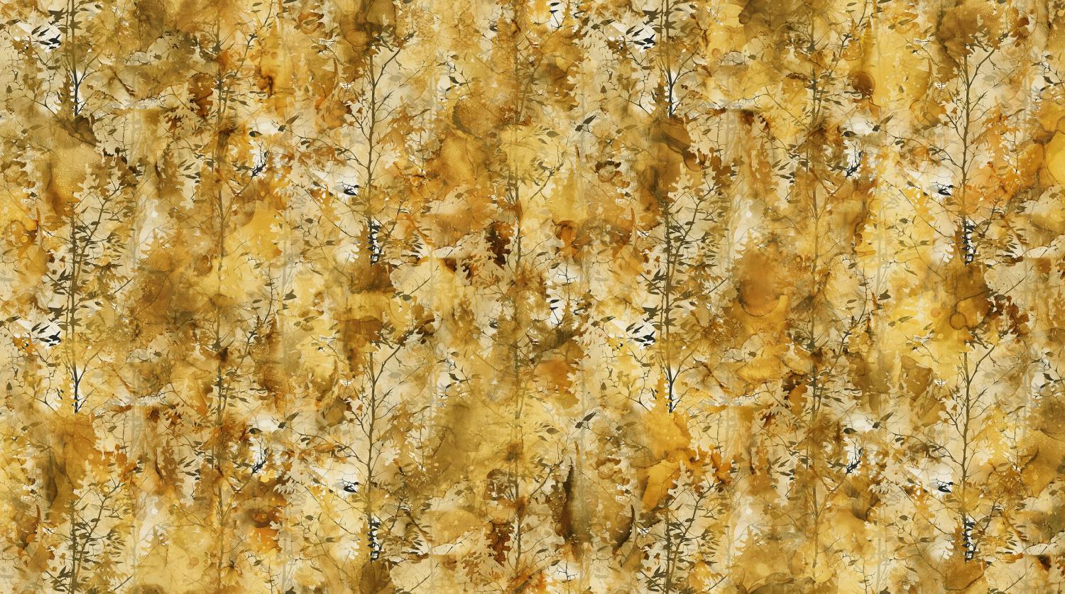 Created by design duo, Deborah Edwards and Melanie Samra, Misty Morning is their latest alcohol ink magnum opus. The collection is characterized by a subtle palette of tinted neutrals ranging from soft focus whites to complex tones of yellow and ochre, as well as sophisticated grays and black in a wide range of values creating perfect contrast. The collection features a panel, full width ombre, and border stripe. Other prints include trees, pine, birds, rolling hills and a variety of alcohol ink textures. The 108” running yardage ombre makes a stunning backing or can be quilted and used for a duvet or quick and easy bargello quilt…even curtains to complement your